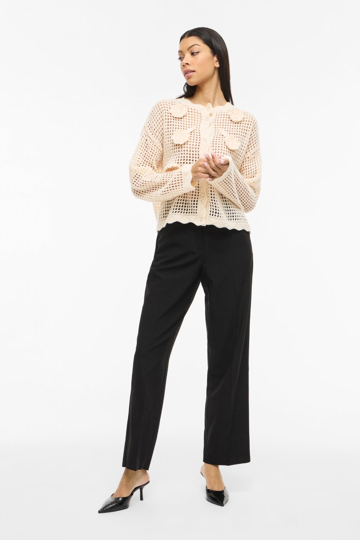 De ware schoonheid van de Enny Cardigan ligt in zijn eindeloze veelzijdigheid. Het is de ultieme garderobekameleon. Voor een ontspannen weekendgevoel draag je hem over je favoriet basic T-shirt en jeans. Geef uw kantoorkleding een boost door deze over een frisse blouse en een paar maatkleding te draperen Pants voor een look die zowel professioneel als chic is. Op weg naar een tuinfeest of brunch? Draag hem over een eenvoudige onderjurk voor een vleugje romantische flair. Dit vest is jouw antwoord op een moeiteloze, samengestelde stijl, ongeacht de dresscode.