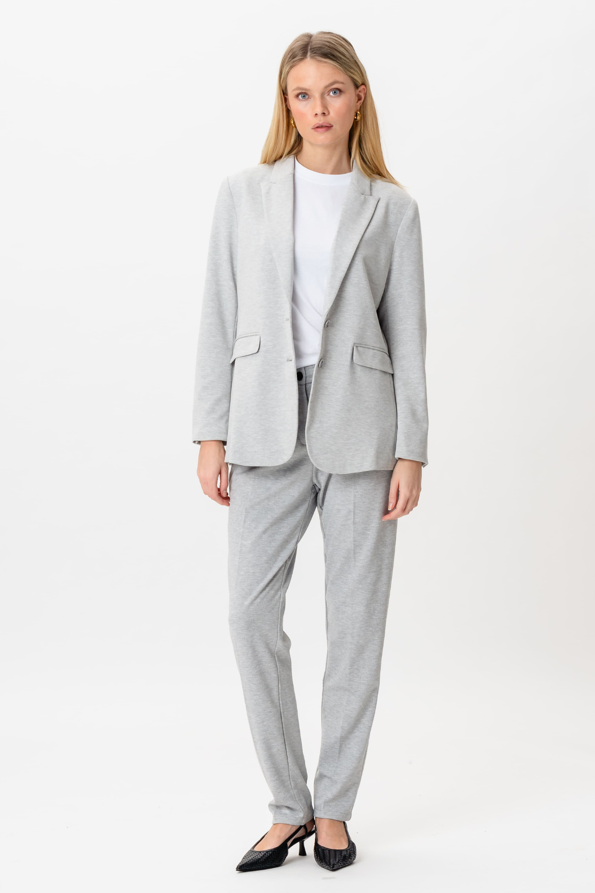 Maak kennis met de Classic Fit Blazer in lichtgrijs, ideaal voor de moderne vrouw die op zoek is naar een mix van stijl en functionaliteit. Deze blazer biedt een naadloze combinatie van verfijning en comfort, waardoor hij perfect is voor zowel professionele omgevingen als casual uitstapjes. Ontworpen met veelzijdigheid in het achterhoofd, vormt het een aanvulling op een breed scala aan outfits, waardoor je garderobe moeiteloos wordt uitgebreid. De eigentijdse lichtgrijze tint zorgt ervoor dat je trendy blijft, terwijl de zorgvuldig gekozen stofsamenstelling een flatterende pasvorm garandeert. Of je nu een vergadering leidt of geniet van een dagje uit, deze blazer zorgt ervoor dat je de hele tijd een verzorgde look behoudt. Til je modespel naar een hoger niveau met dit must-have-stuk dat een tijdloze toevoeging aan je collectie belooft te worden. Ervaar het beste op het gebied van design en kwaliteit, gemaakt voor de zelfverzekerde vrouw die zowel stijl als gemak waardeert. Ontdek de opmerkelijke mix van duurzaamheid en elegantie, en maak het tot een onmisbaar onderdeel van uw dagelijkse ensembles.